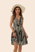 Key Details: Functional pockets design; elegant A-line silhouette; chic crossed V-neck; above-knee length; sleeveless style with tailored waistline that conceals the tummy area