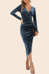 Features£ºThe plunging V-neck creates an alluring neckline; rich velvet fabric adds luxe texture and warmth; the wrap-front design drapes elegantly to flatter the waist; ruched detailing sculpts the silhouette and camouflages imperfections; the asymmetric side slit introduces subtle movement; the bodycon midi cut hugs curves for a sleek, sophisticated evening look.