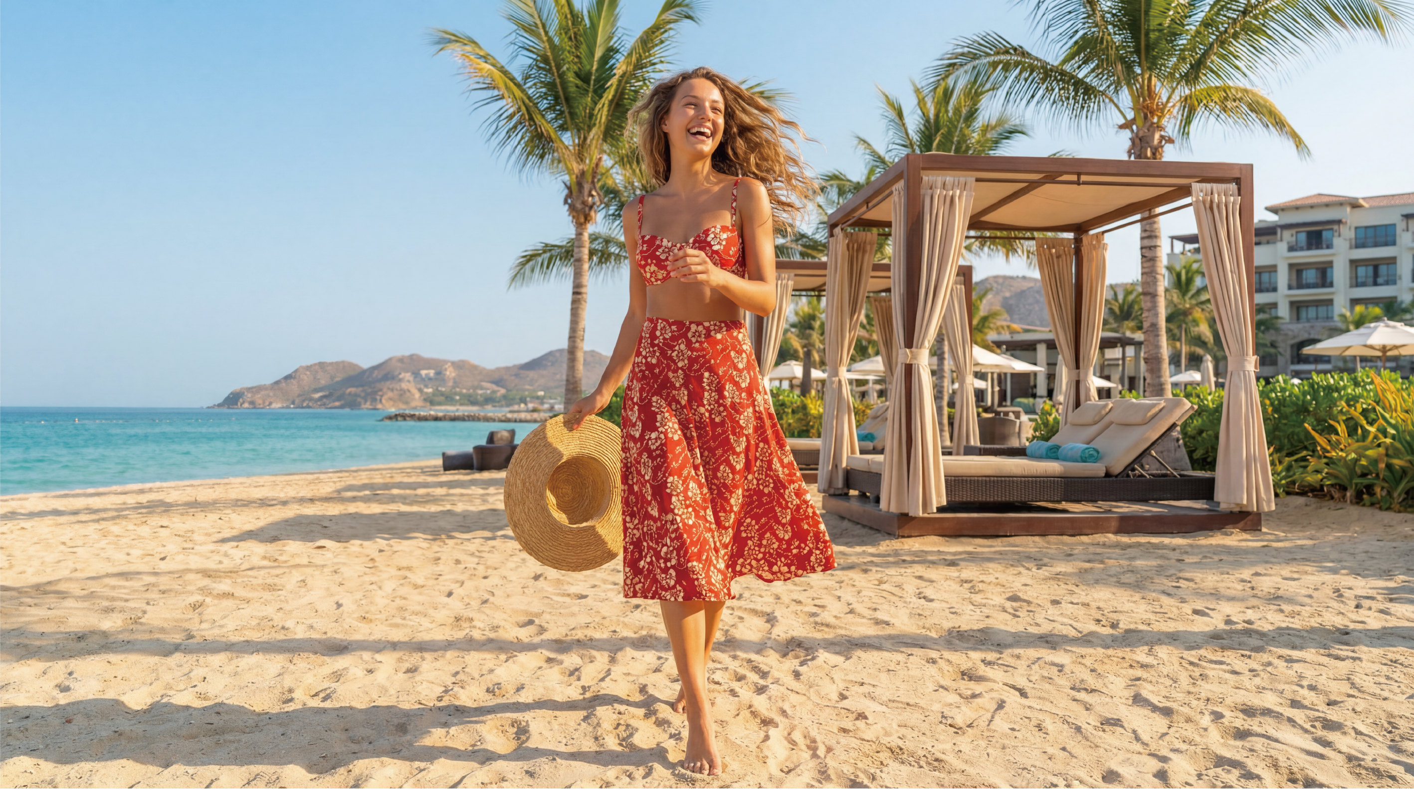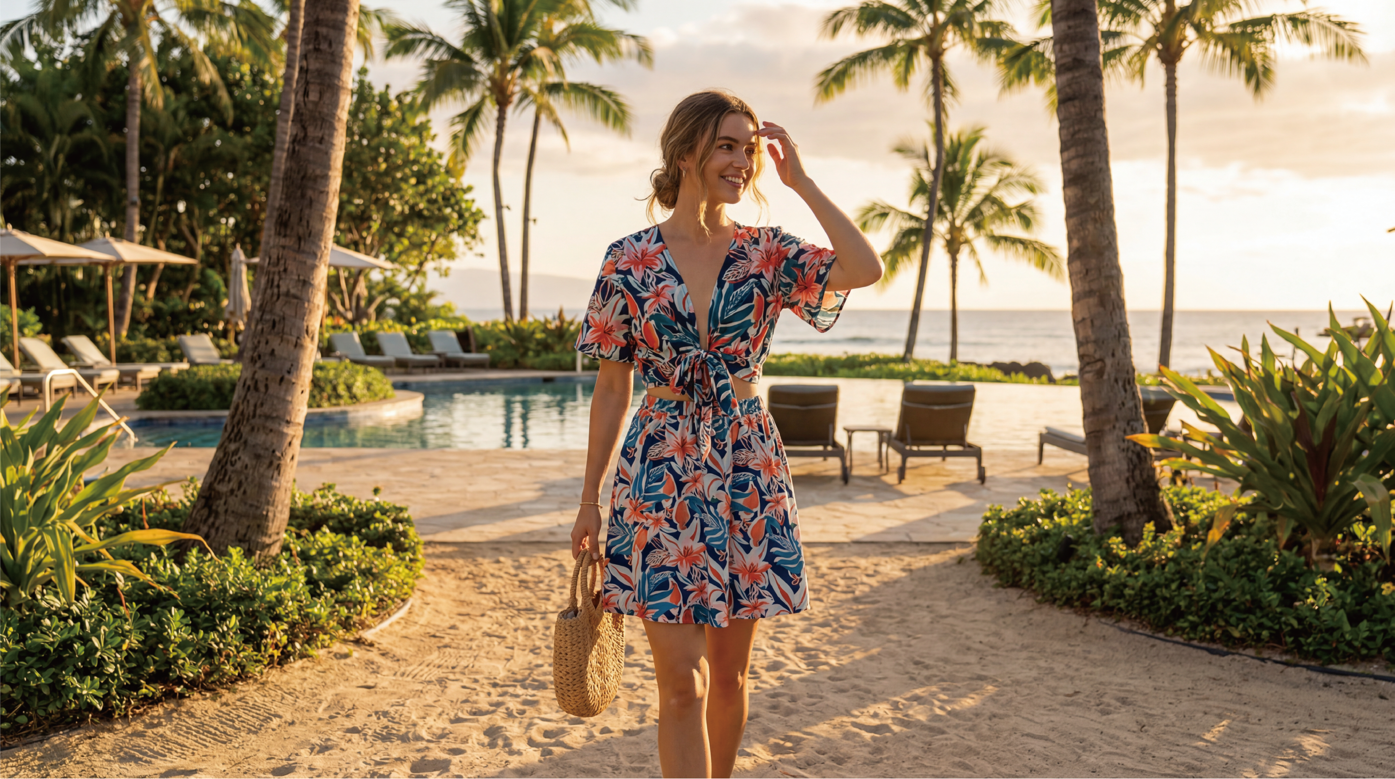 Curate women's apparel into U.S. vacation-themed collections (e.g., California Coastal, Hawaiian Retreat), each comprising 3–5 complementary pieces that form complete, ready-to-style looks.
