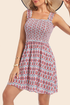 Features: This dress is designed with a flattering square neckline and ruffled shoulder straps, adding a playful and feminine touch. The smocked bodice provides a snug yet stretchy fit, ensuring all-day comfort. The A-line silhouette gracefully drapes over the body, making it a perfect choice for casual outings and summer adventures.