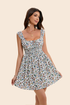 Features: Sleeveless square-neck mini dress with a drawstring bust detail, smocked waist, and flared skirt, crafted from 100% rayon. This design blends bohemian floral charm with playful movement, offering both a figure-flattering silhouette and breathable comfort.