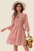 Features: Flattering V-neckline with bohemian Drawsrtings, 3/4 sleeves with delicate ruffled cuffs, and an loose fitting A-line mini design.