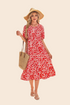 Feature: Midi dress with puff sleeves, round neckline, and A-line silhouette. Offers comfort and style. Puff sleeves add a retro touch; midi length flatters all body types.